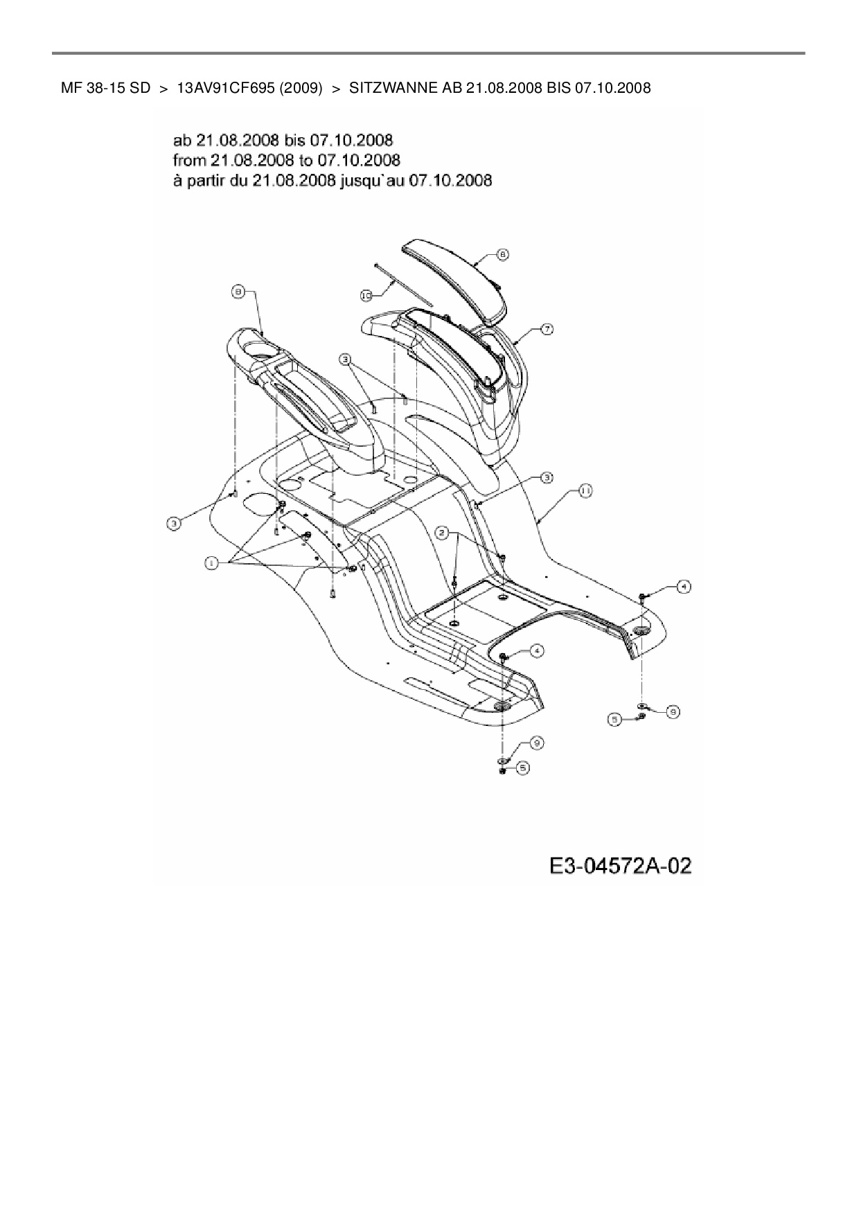 Ersatzteile für Rasentraktor Massey Ferguson MF 38-15 SD aus der Zeichnung Sitzwanne ab 21.08.2008 bis 07.10.2008: