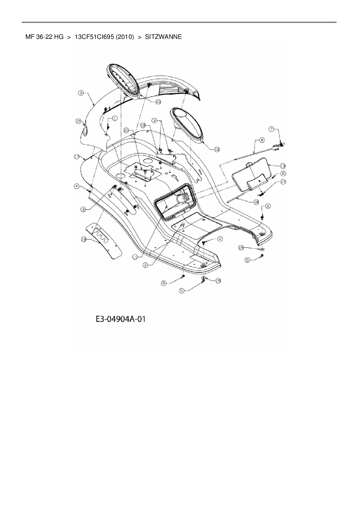 Ersatzteile für Rasentraktor Massey Ferguson MF 36-22 HG aus der Zeichnung Sitzwanne: