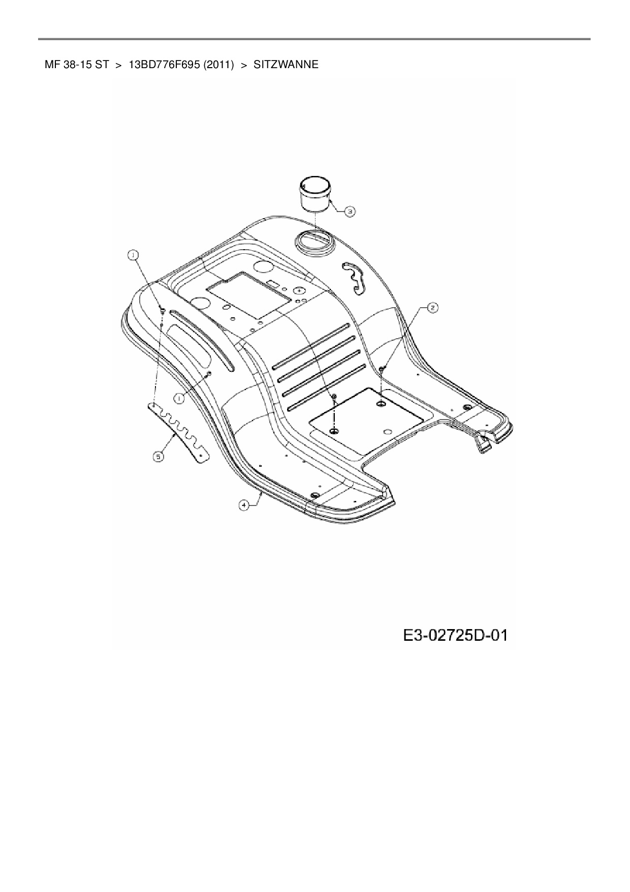 Ersatzteile für Rasentraktor Massey Ferguson MF 38-15 ST aus der Zeichnung Sitzwanne: