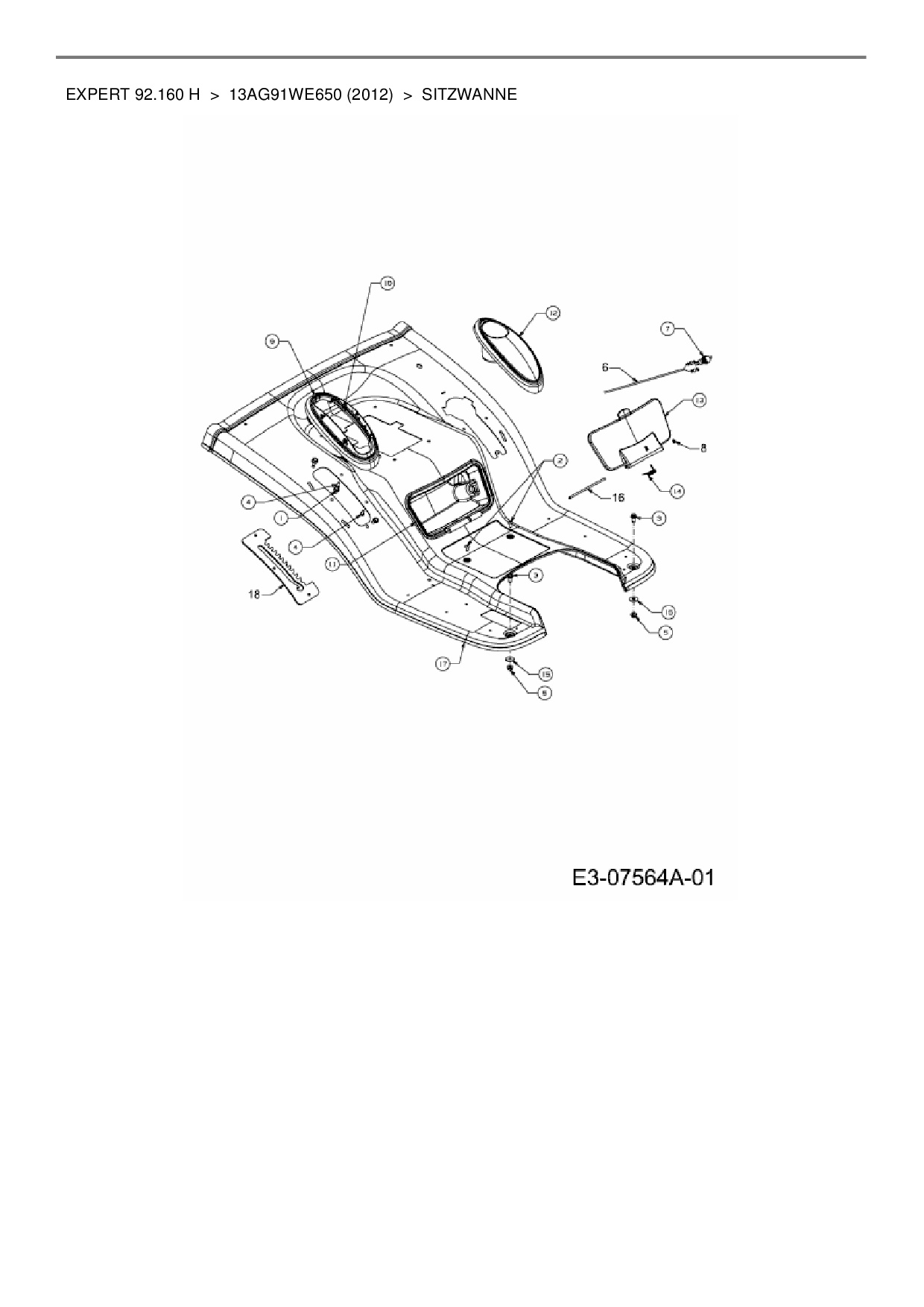 Ersatzteile für Rasentraktor Wolf-Garten Expert Expert 92.160 H aus der Zeichnung Sitzwanne: