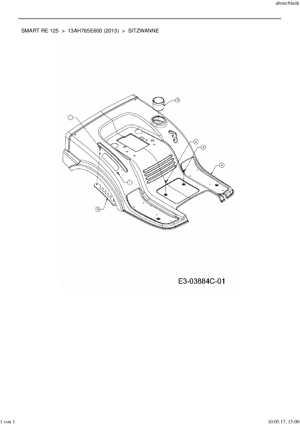 Ersatzteile für Rasentraktor MTD Smart RE 125 aus der Zeichnung Sitzwanne: