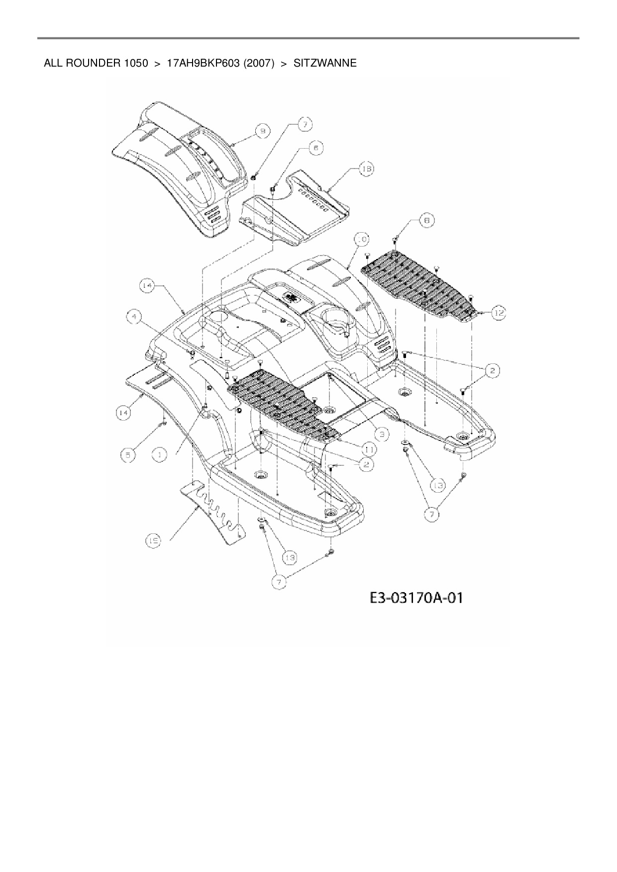 Ersatzteile für Zero Turn Cub Cadet All Rounder 1050 aus der Zeichnung Sitzwanne: