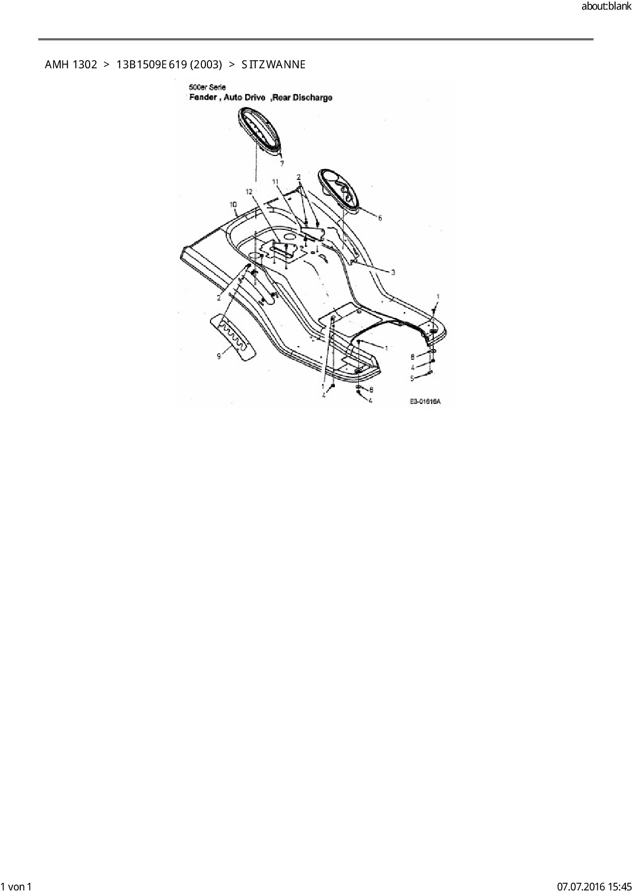 Ersatzteile für Rasentraktor FLEURELLE AMH 1302 aus der Zeichnung Sitzwanne: