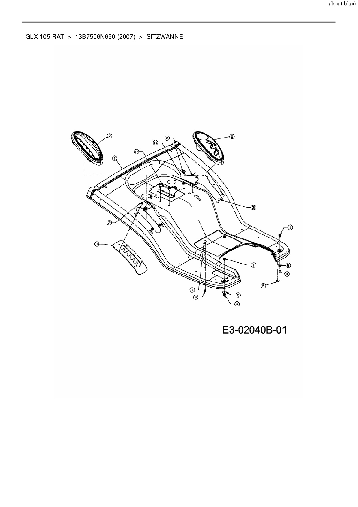 Ersatzteile für Rasentraktor Gutbrod GLX 105 RAT aus der Zeichnung Sitzwanne: