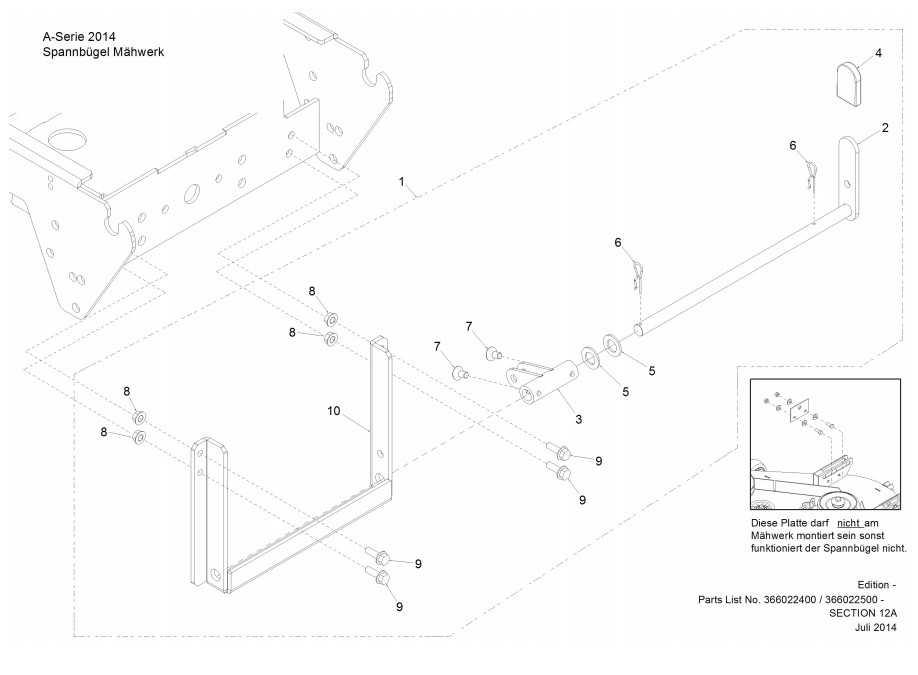 Zeichnung von ECHO-Motorgeräte Rasentraktoren A-Serie A-416KAWA-4WD - E1100104 Spannbügel Mähwerk bis März 2015: