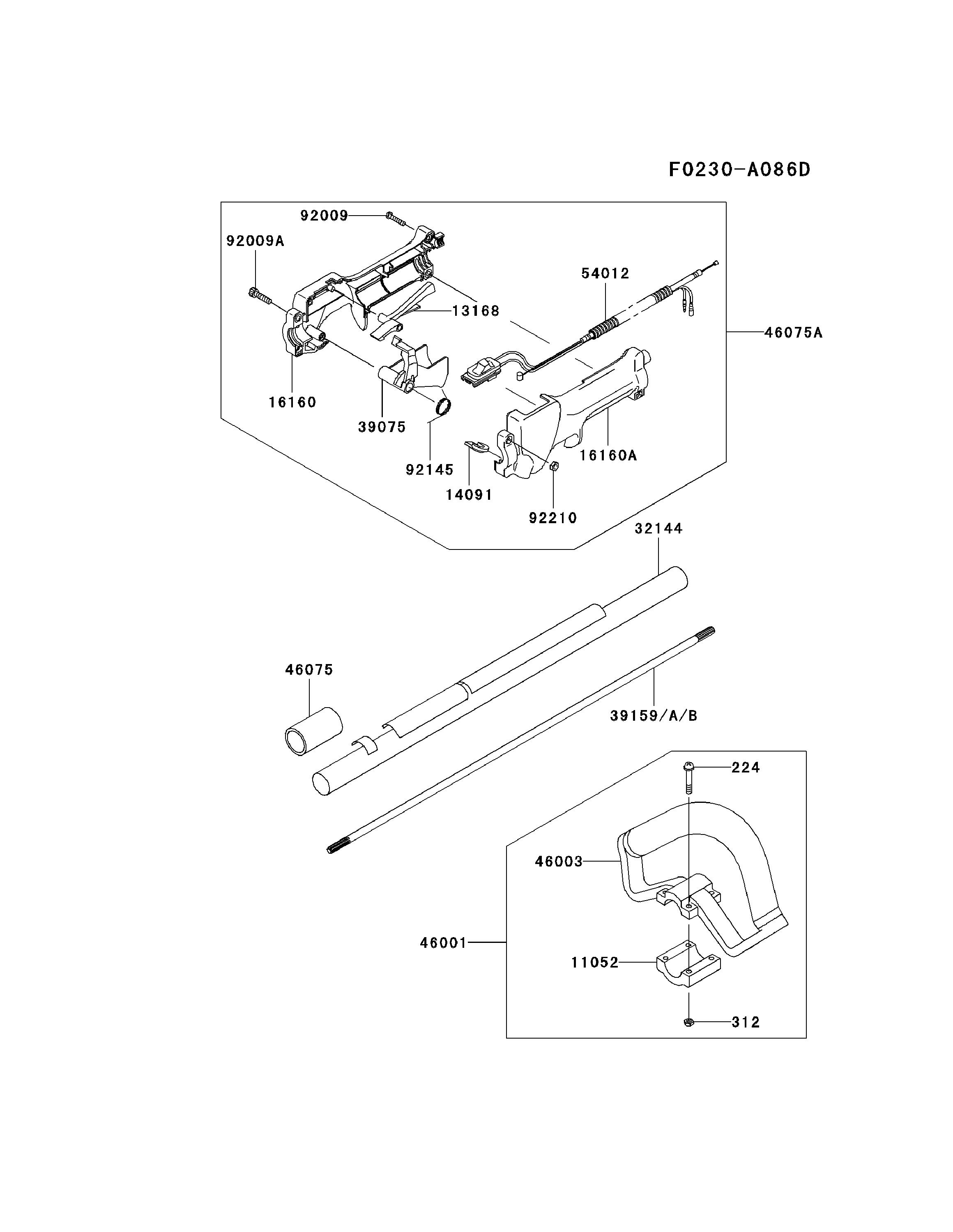 Hier finden Sie alle Ersatzteile von Kawasaki Heckenschere HK525B-AS50 (KCS525A) aus der Zeichnung Stange/Griff/Schutz:
