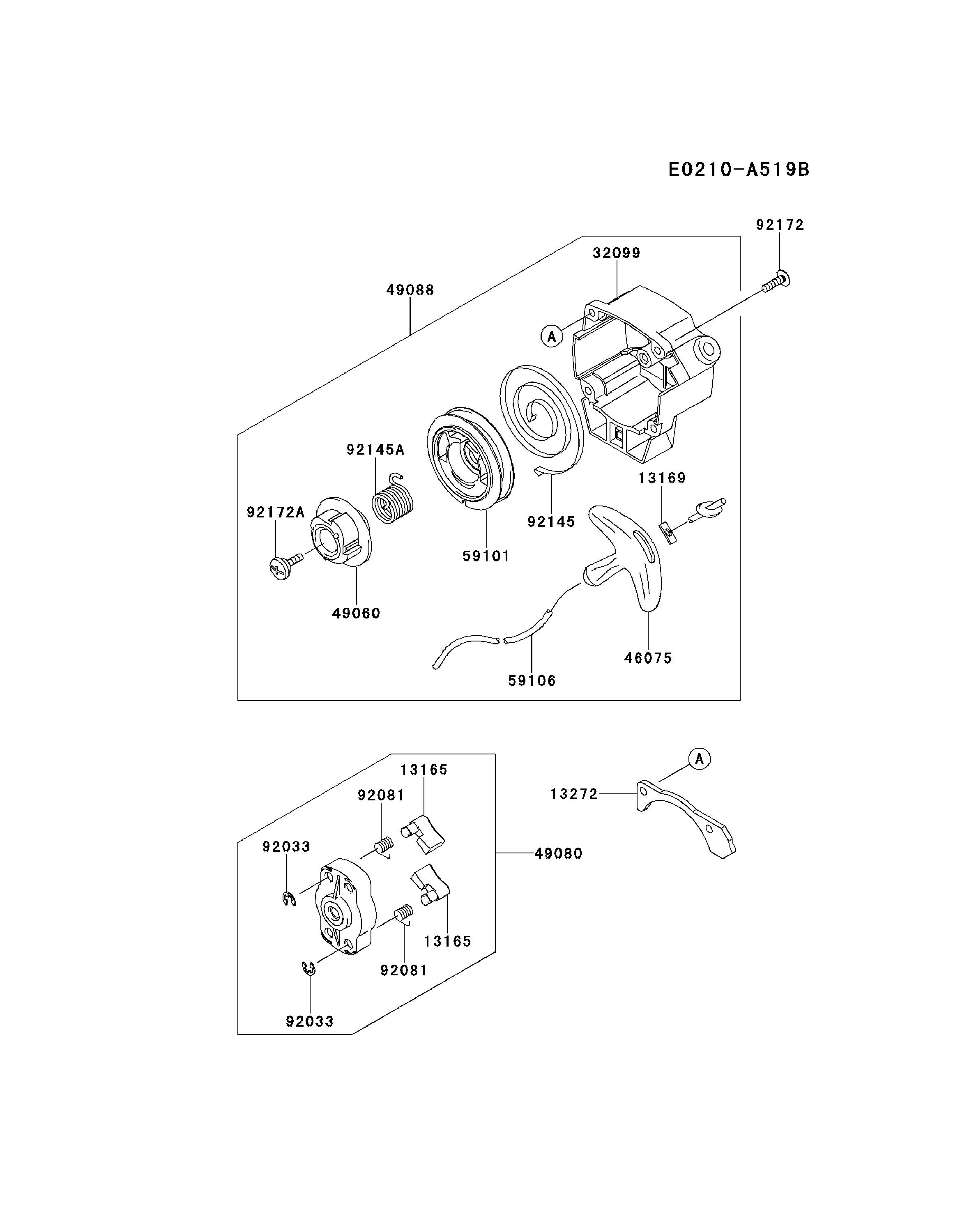 Hier finden Sie alle Ersatzteile von Kawasaki Laubbläser HG300B-DS50 (KRH300A) aus der Zeichnung Starter: