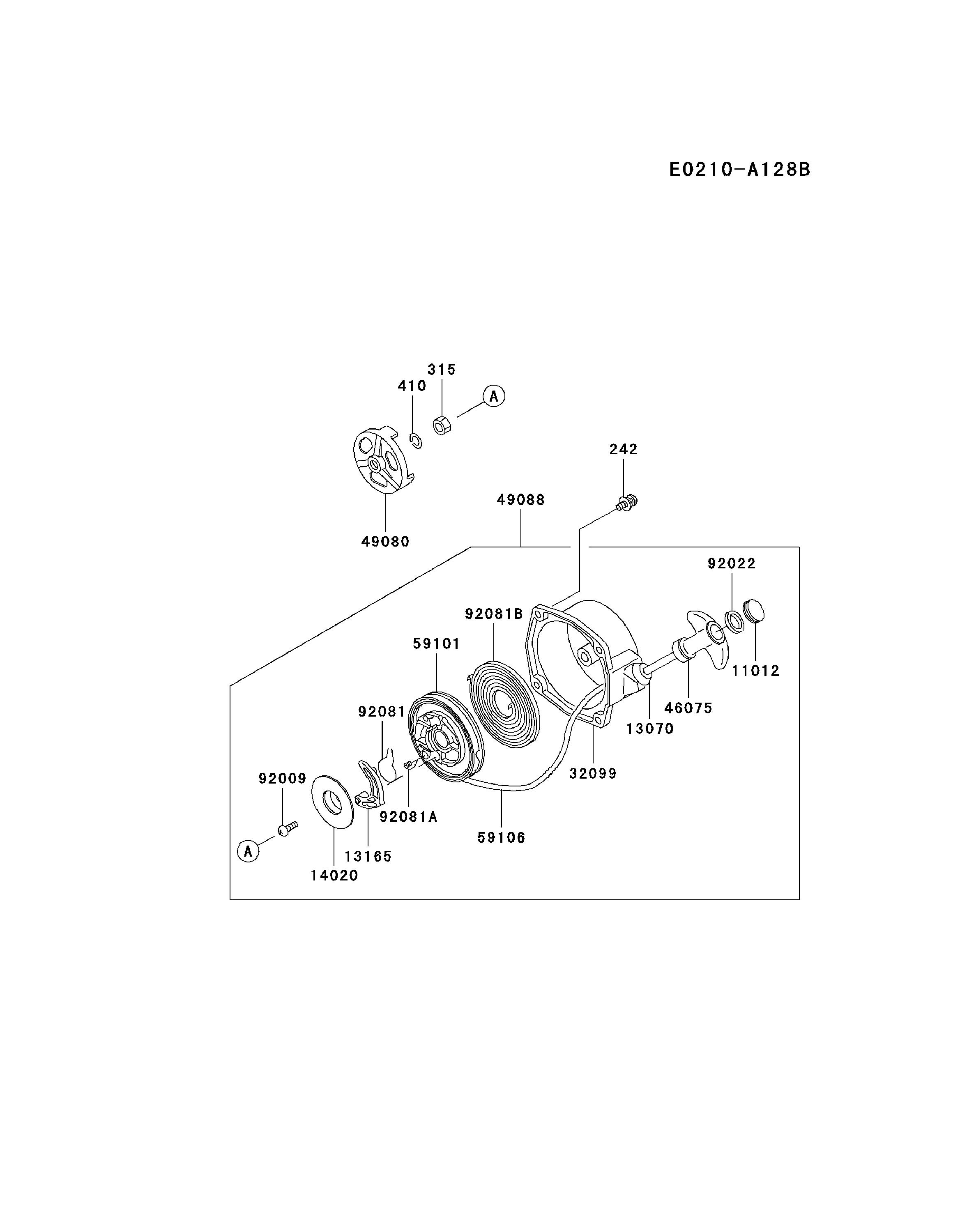 Hier finden Sie alle Ersatzteile von Kawasaki Motorsense HA040A-AT51 (TD40) aus der Zeichnung Starter:
