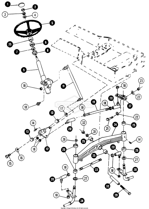 Hier finden Sie alle Ersatzteile von Snapper 80124 - 1600A, 16 HP Gear Drive Garden Tractor (MF) der Zeichnungsgruppe Steering, Front Suspension: