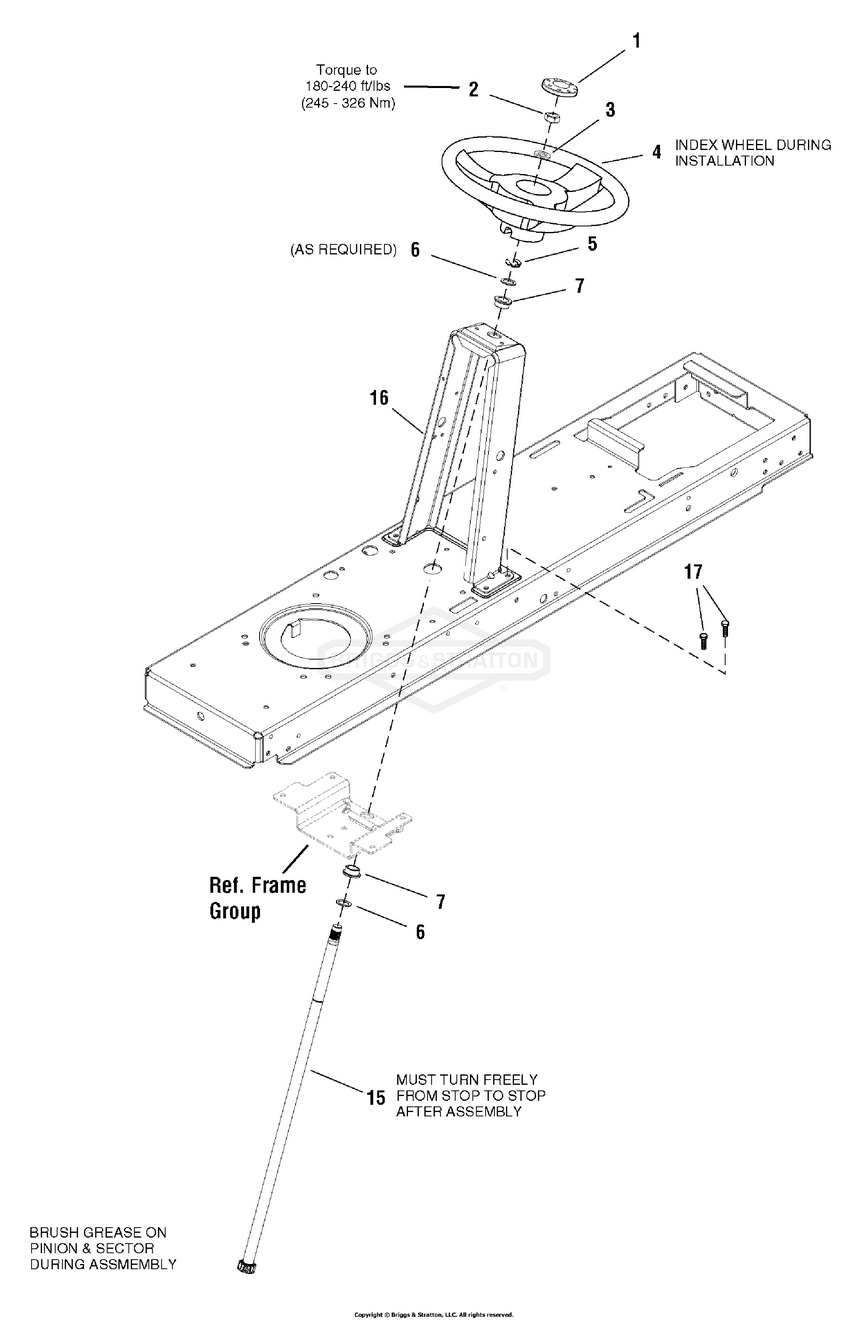 Zeichnung Snapper 2690498 - ELT2044, 44" 20 HP Hydro Drive Euro Tractor RMO LT200 Series aus der Zeichnungsgruppe Steering Group: