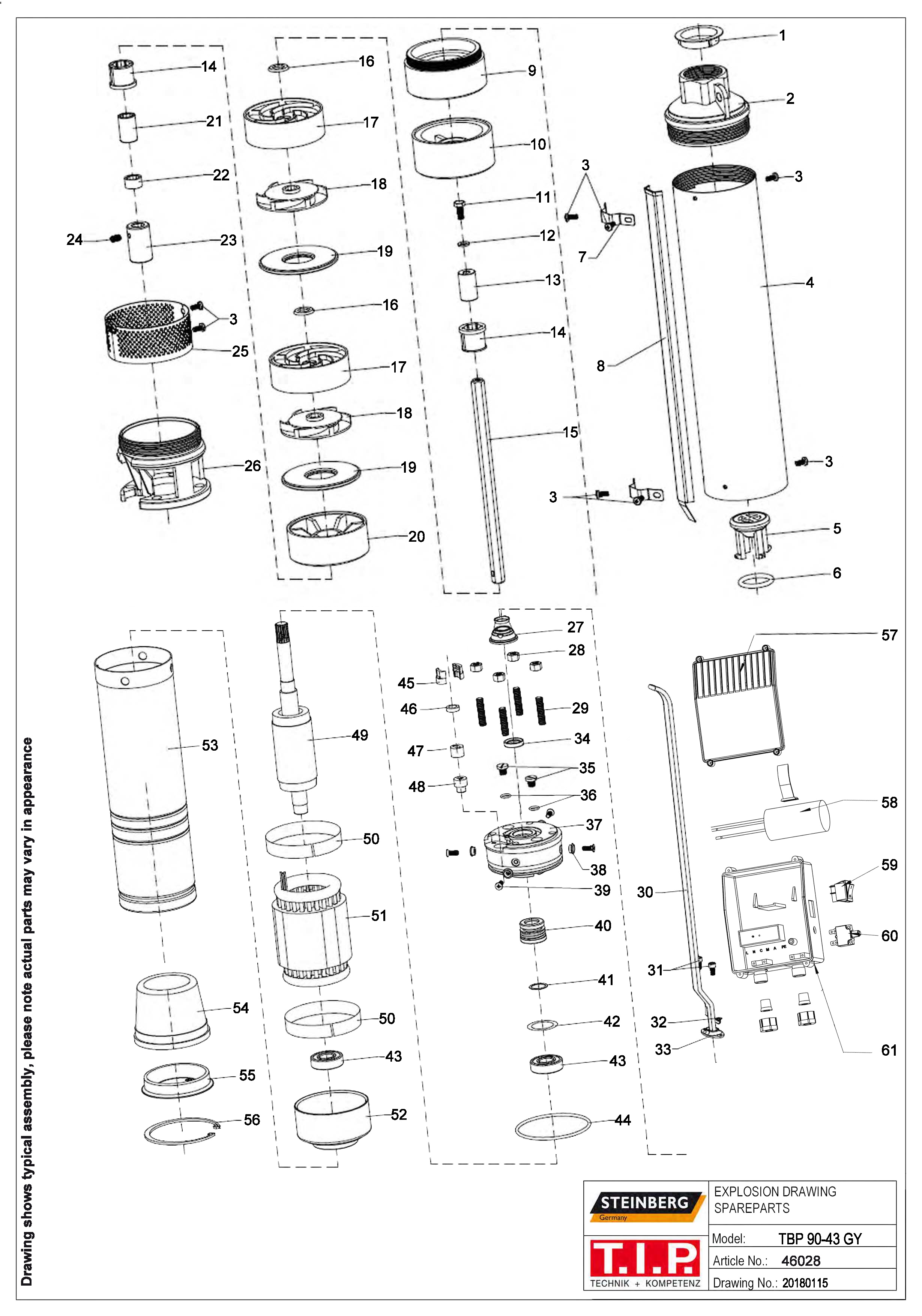 Folgende Ersatzteile für T.I.P. Tiefbrunnenpumpe Steinberg TBP 90/43 S mit der Geräte-Artikelnummer 46028 können Sie hier bestellen: