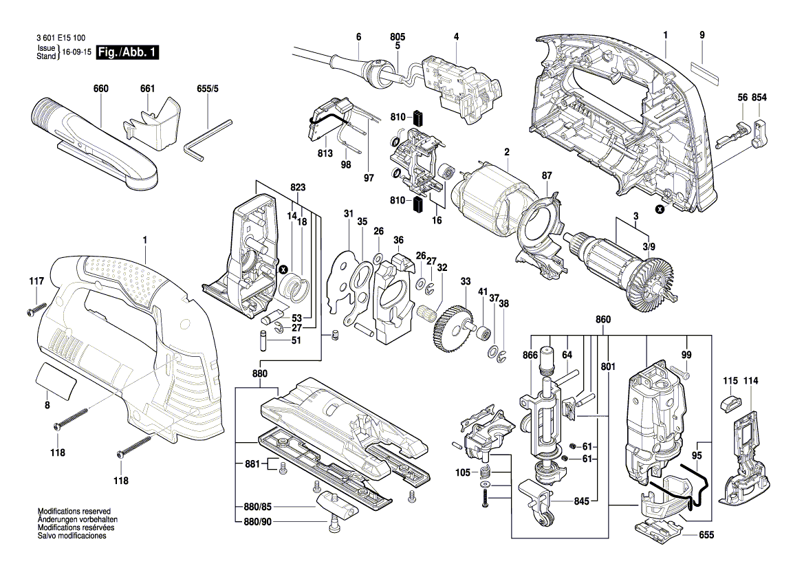 Zeichnungen von Bosch Stichsäge GST 1400 BCE mit der Geräte-Artikelnummer 3 601 E15 100