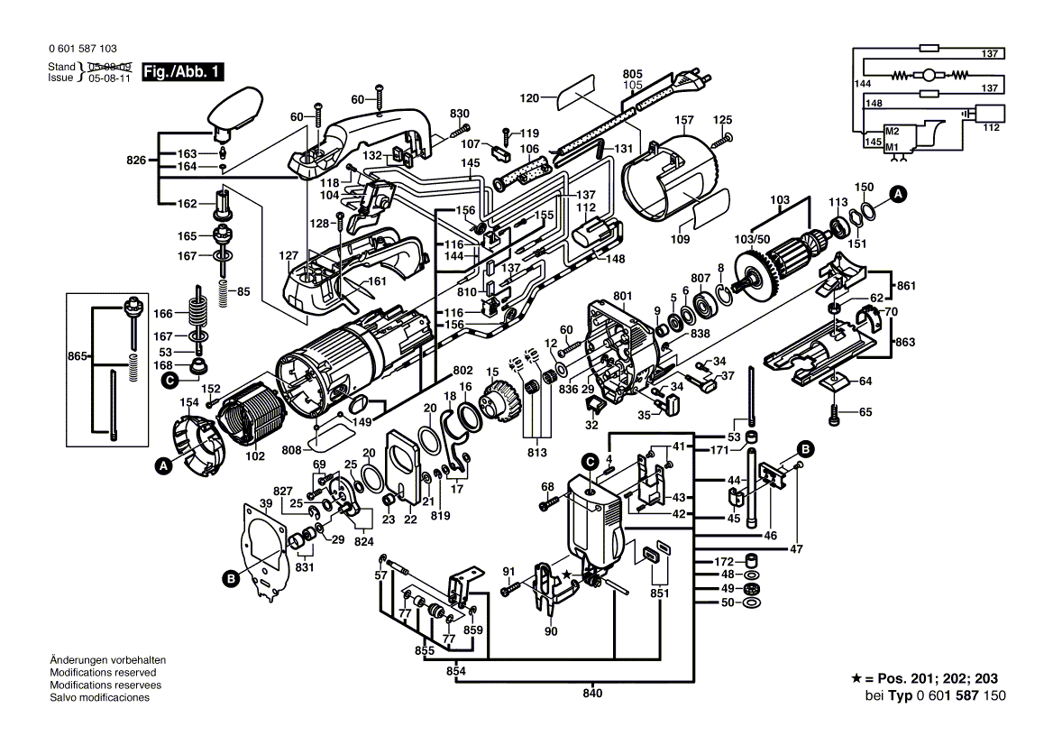 Zeichnungen von Bosch Stichsäge GST 85 PB mit der Geräte-Artikelnummer 0 601 587 103