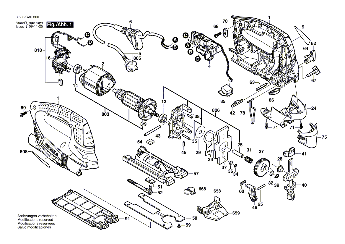 Zeichnungen von Bosch Stichsäge PST 750 PE mit der Geräte-Artikelnummer 3 603 CA0 301