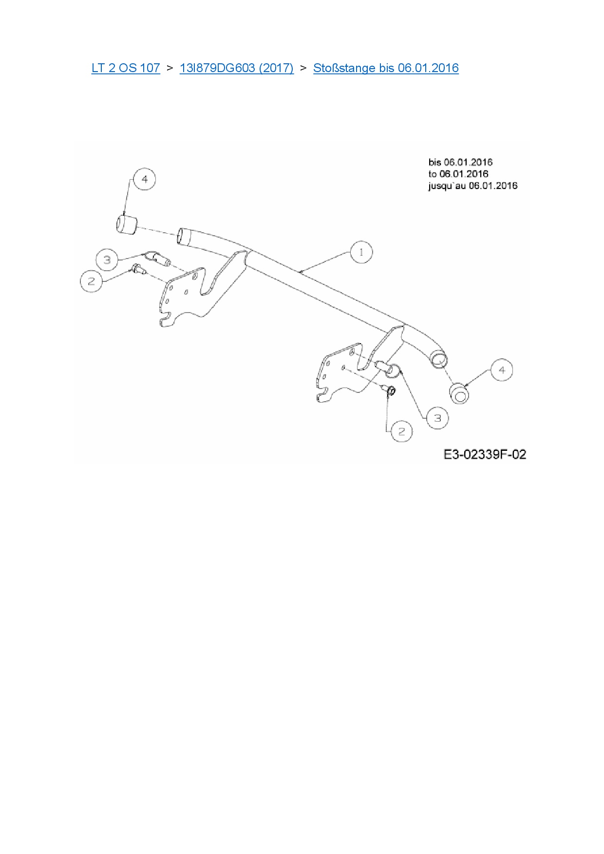 Ersatzteile für Rasentraktor Cub Cadet LT 2 OS 107 aus der Zeichnung Stoßstange bis 06.01.2016: