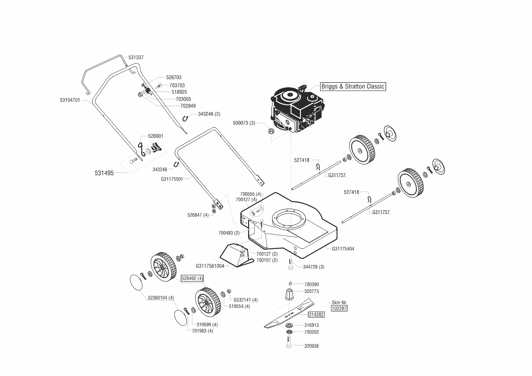 Nicht alle Ersatzteile von Ginge Benzinrasenmäher Sunline 46 S (118309) sind immer lieferbar/vorrätig.