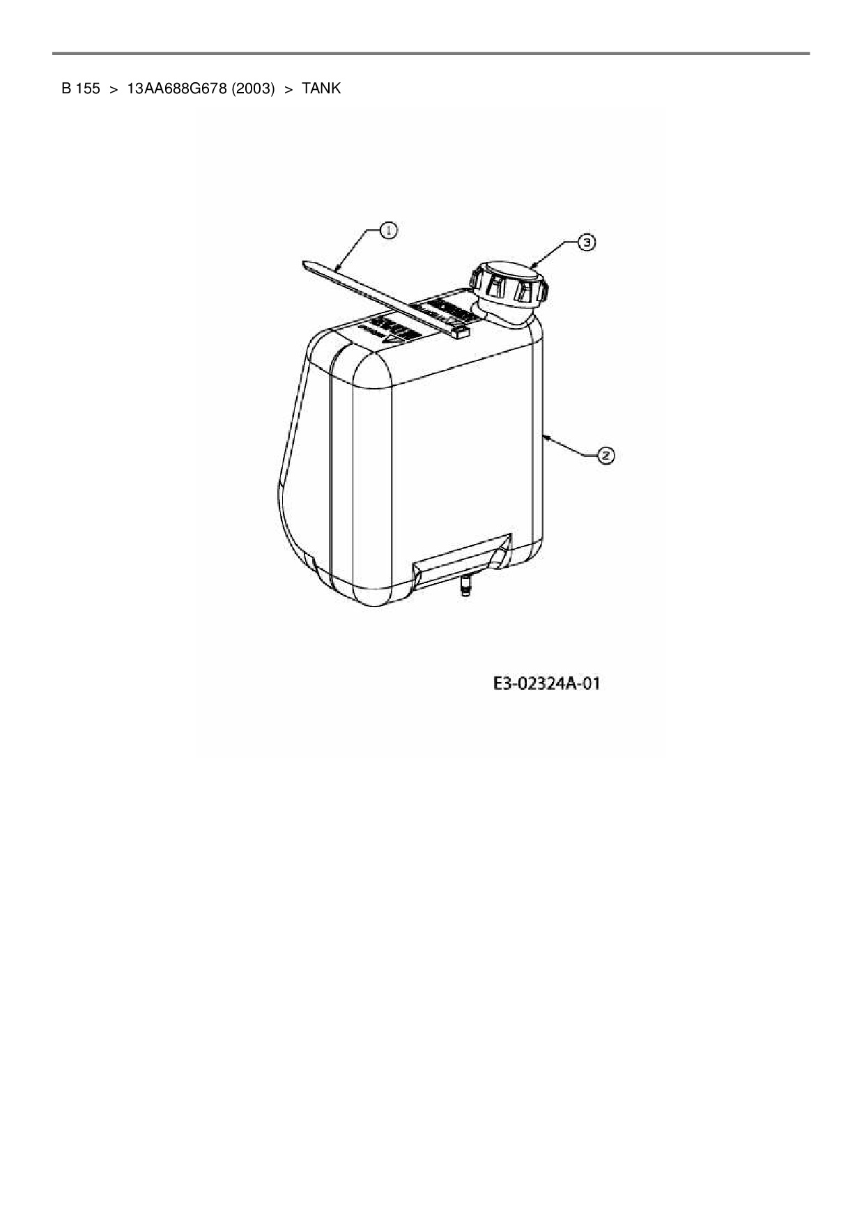 Ersatzteile für Rasentraktor MTD B 155 aus der Zeichnung Tank: