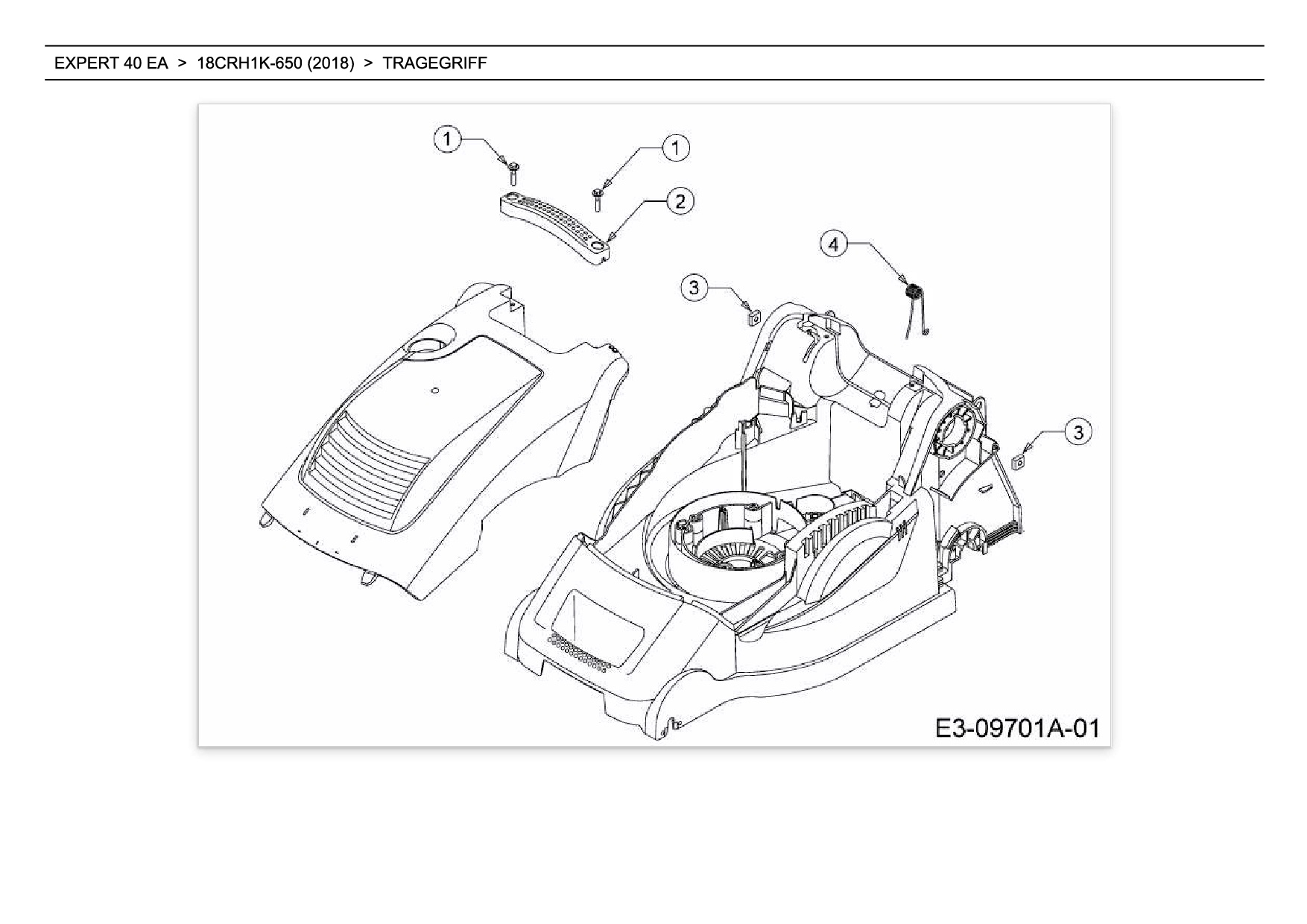 Ersatzteile für Elektromäher mit Antrieb Wolf-Garten Expert EXPERT 40 EA aus der Zeichnung Tragegriff:
