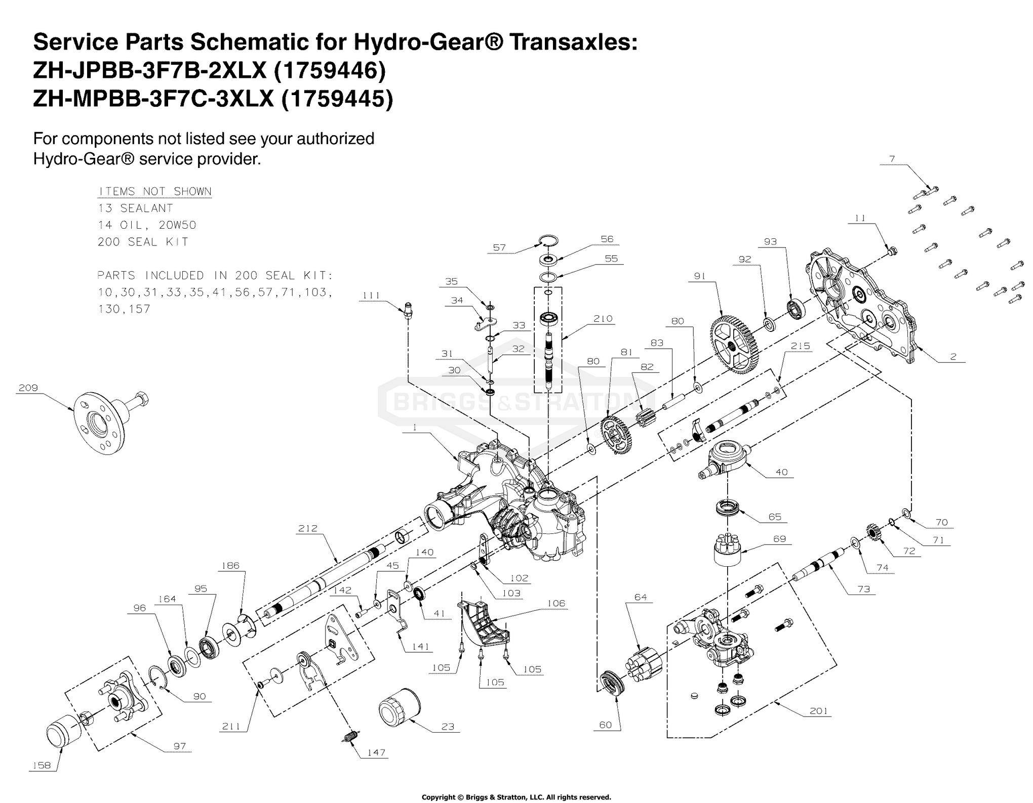 Zeichnung Snapper 2691711-00 - ZTX250, 8270 SER B&S Rider w/122cm Mower Deck, EU - Zeichnungsgruppe Transaxle SERVICE Parts - Hydro-Gear ZT2800: