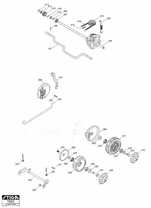 Hier finden Sie alle Ersatzteile von Stiga Benzin-Rasenmäher ab 2005 Combi 45 S (Geräte Nr 24-2881-51) aus dem Zeichnungsblatt Transmission Radaufhängung: