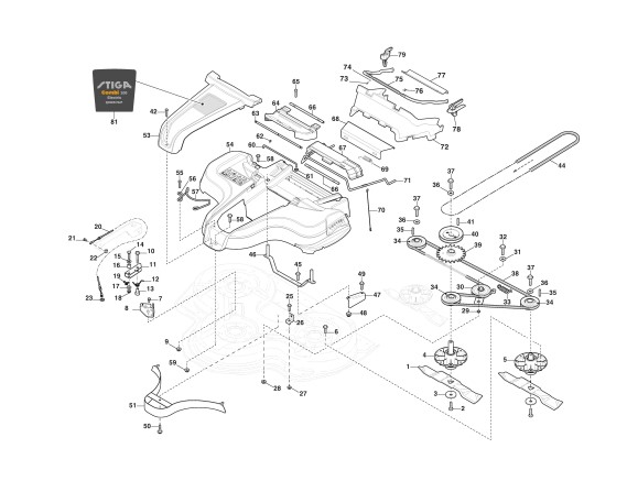 Zeichnungen von Stiga Frontaufsitzmäher Park Mähdecks mit Geräte Nr. 2D6210021/ST1 ab Baujahr 2021