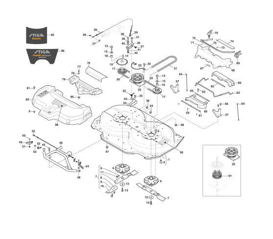 Zeichnungen von Stiga Frontaufsitzmäher Park Mähdecks mit Geräte Nr. 2D6210521/ST1 ab Baujahr 2021
