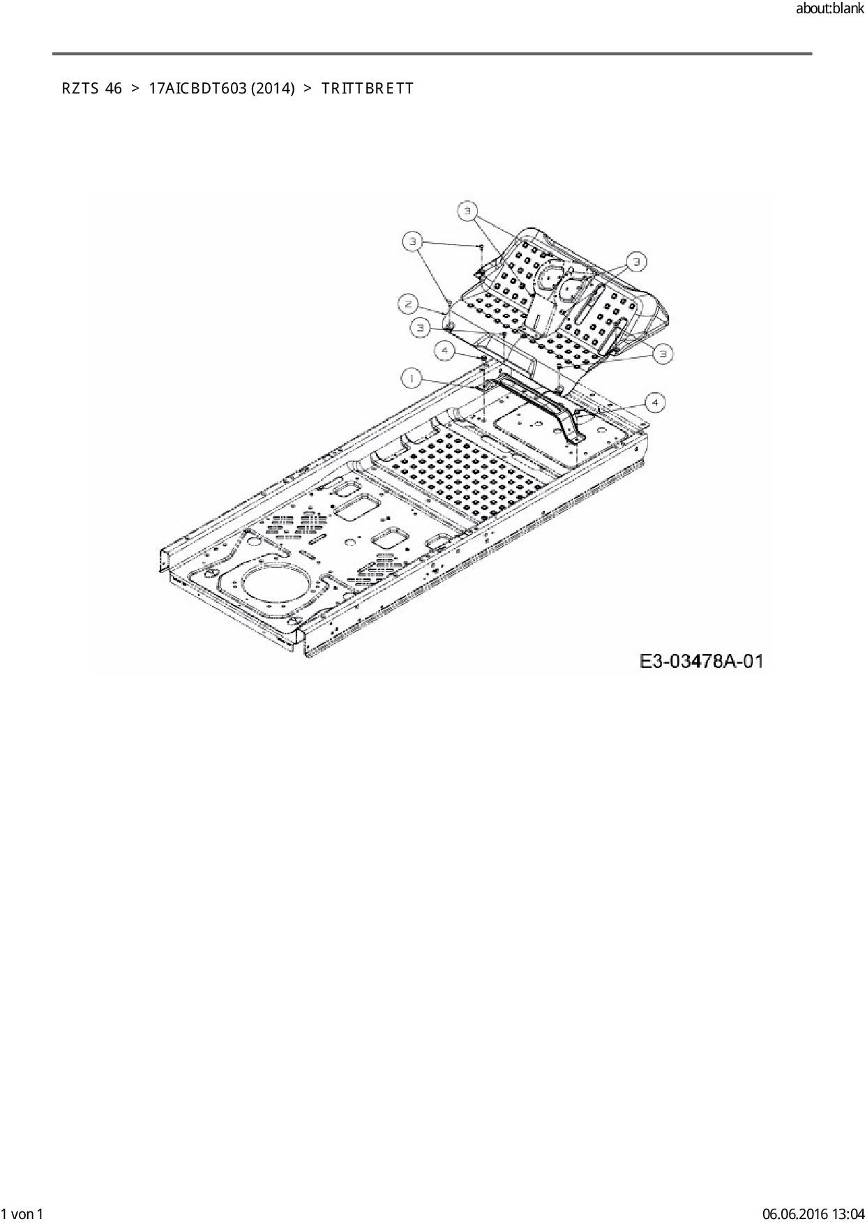 Ersatzteile für Zero Turn Cub Cadet RZTS 46 aus der Zeichnung Trittbrett: