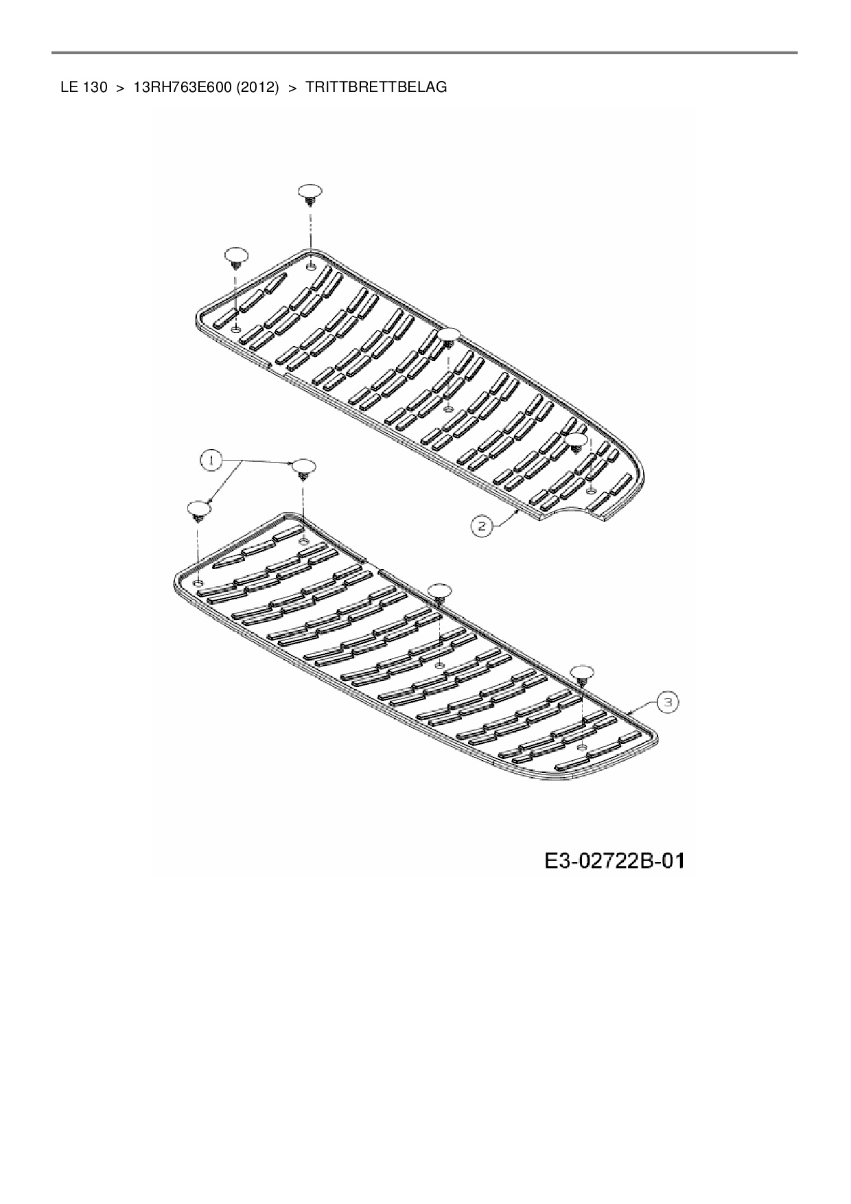 Ersatzteile für Rasentraktor MTD LE 130 aus der Zeichnung Trittbrettbelag: