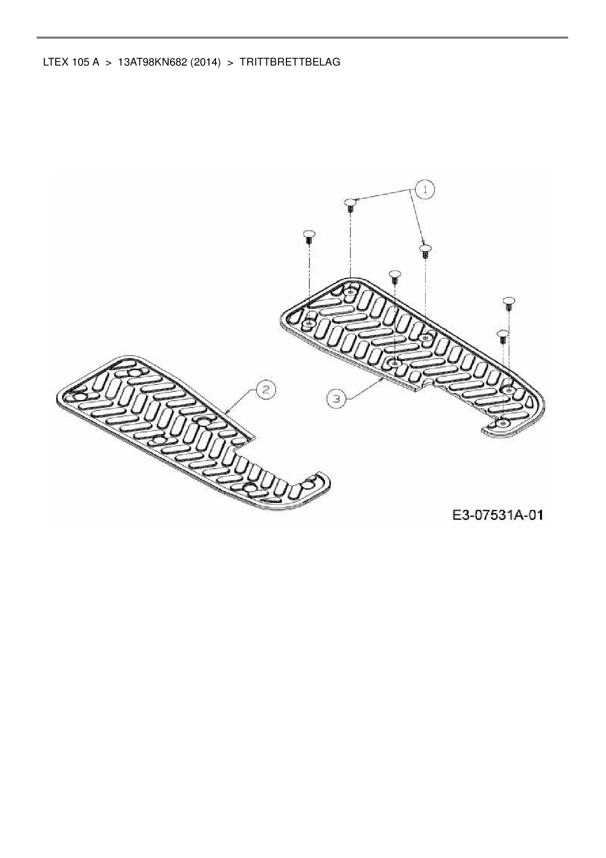 Ersatzteile für Rasentraktor MTD LTEX 105 A aus der Zeichnung Trittbrettbelag: