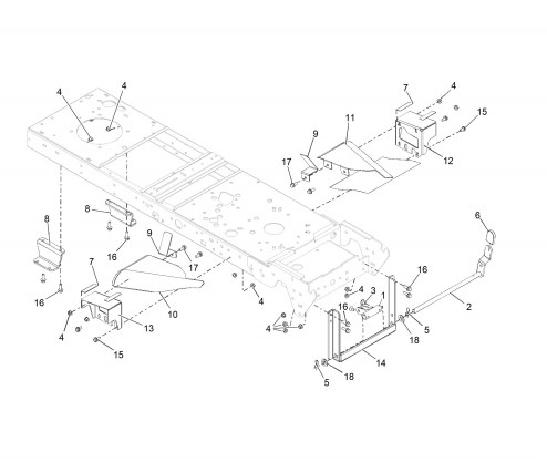 Zeichnung von Ariens Rasentraktoren A-4XXA-Serie A-418A-4WD - A1100131 Trittbretter, Mähwerksspannbügel: