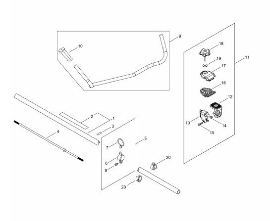 Zeichnung von shindaiwa Motorsensen Kreiselscheren C360TPRS-230 U-Griff, Gestänge: