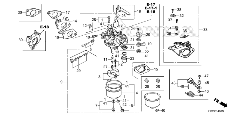 Ersatzteile für Honda Motoren GX390T1 LXE9 (LXE9) Baugruppe VERGASER (1)