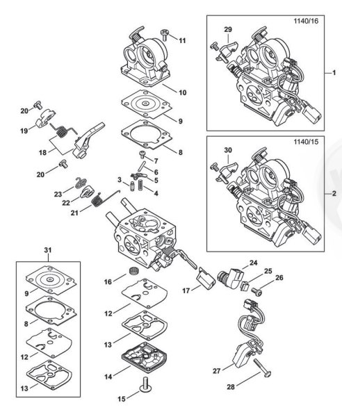 Hier finden Sie alle Ersatzteile von Stihl Benzin-Motorsägen MS 362 C-M der Zeichnungsgruppe Vergaser 1140/16, 1140/15:
