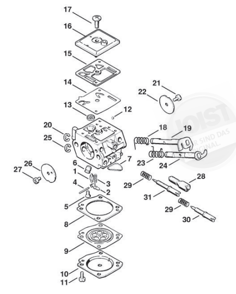 Hier finden Sie alle Ersatzteile von Stihl Benzin-Motorsägen 034 S der Zeichnungsgruppe Vergaser C3A-S19, C3A-S38: