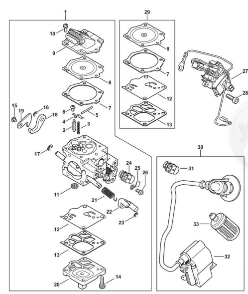Hier finden Sie alle Ersatzteile von Stihl Benzin-Motorsägen MS 661 C-M der Zeichnungsgruppe Vergaser WJ-134: