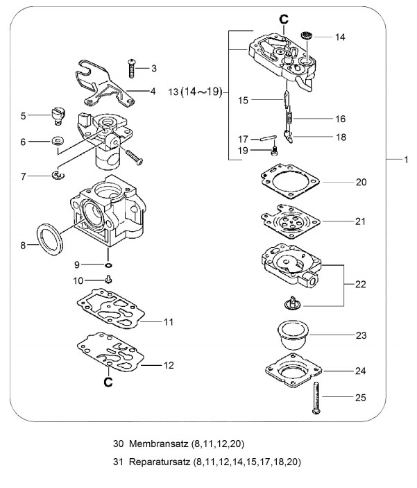 Zeichnung von ECHO Laubbläser, tragbar PB-650 Vergaser WYK-150A: