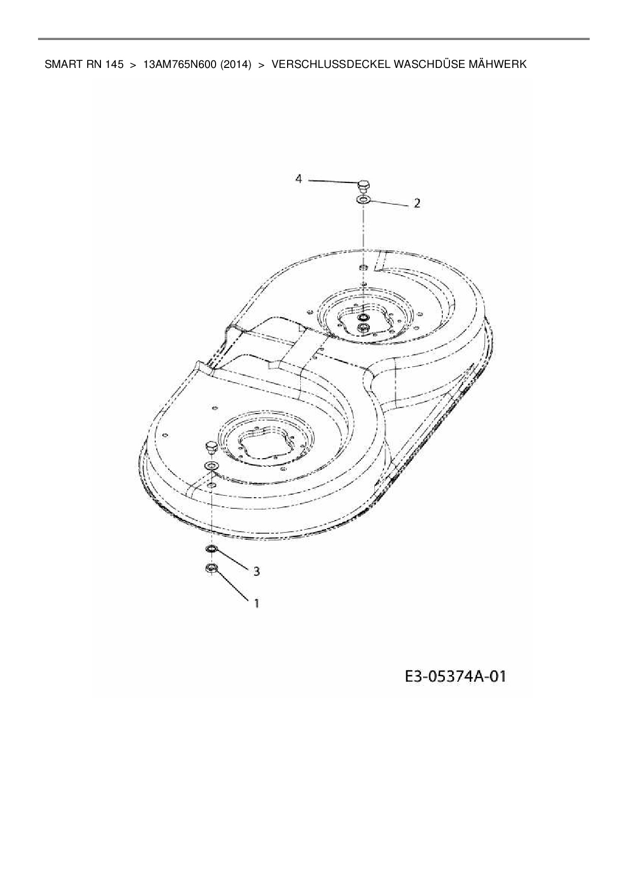 Ersatzteile für Rasentraktor MTD Smart RN 145 aus der Zeichnung Verschlussdeckel Waschdüse Mähwerk: