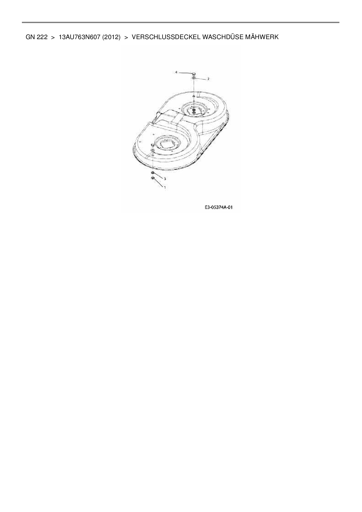 Ersatzteile für Rasentraktor Blisar GN 222 aus der Zeichnung Verschlussdeckel Waschdüse Mähwerk:
