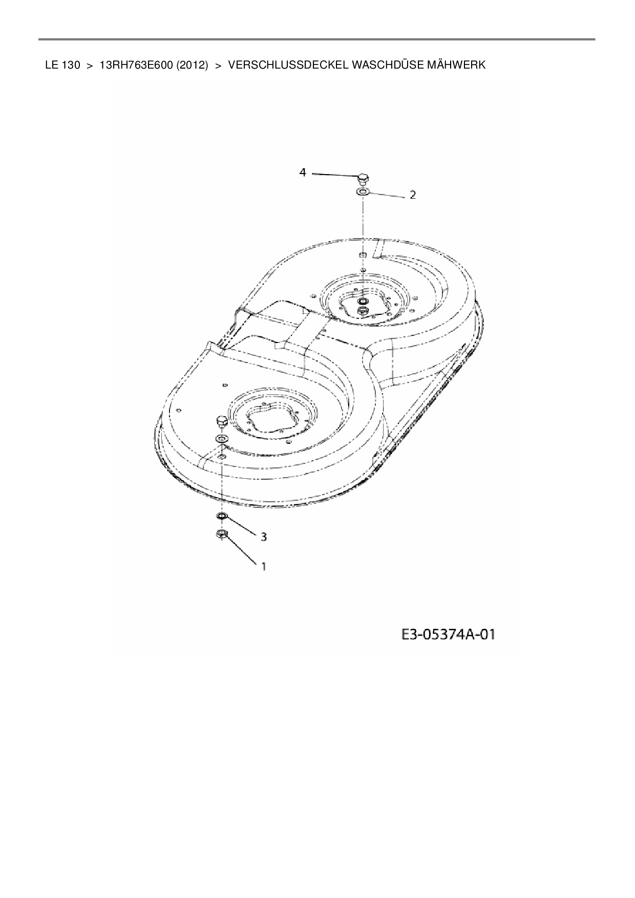 Ersatzteile für Rasentraktor MTD LE 130 aus der Zeichnung Verschlussdeckel Waschdüse Mähwerk: