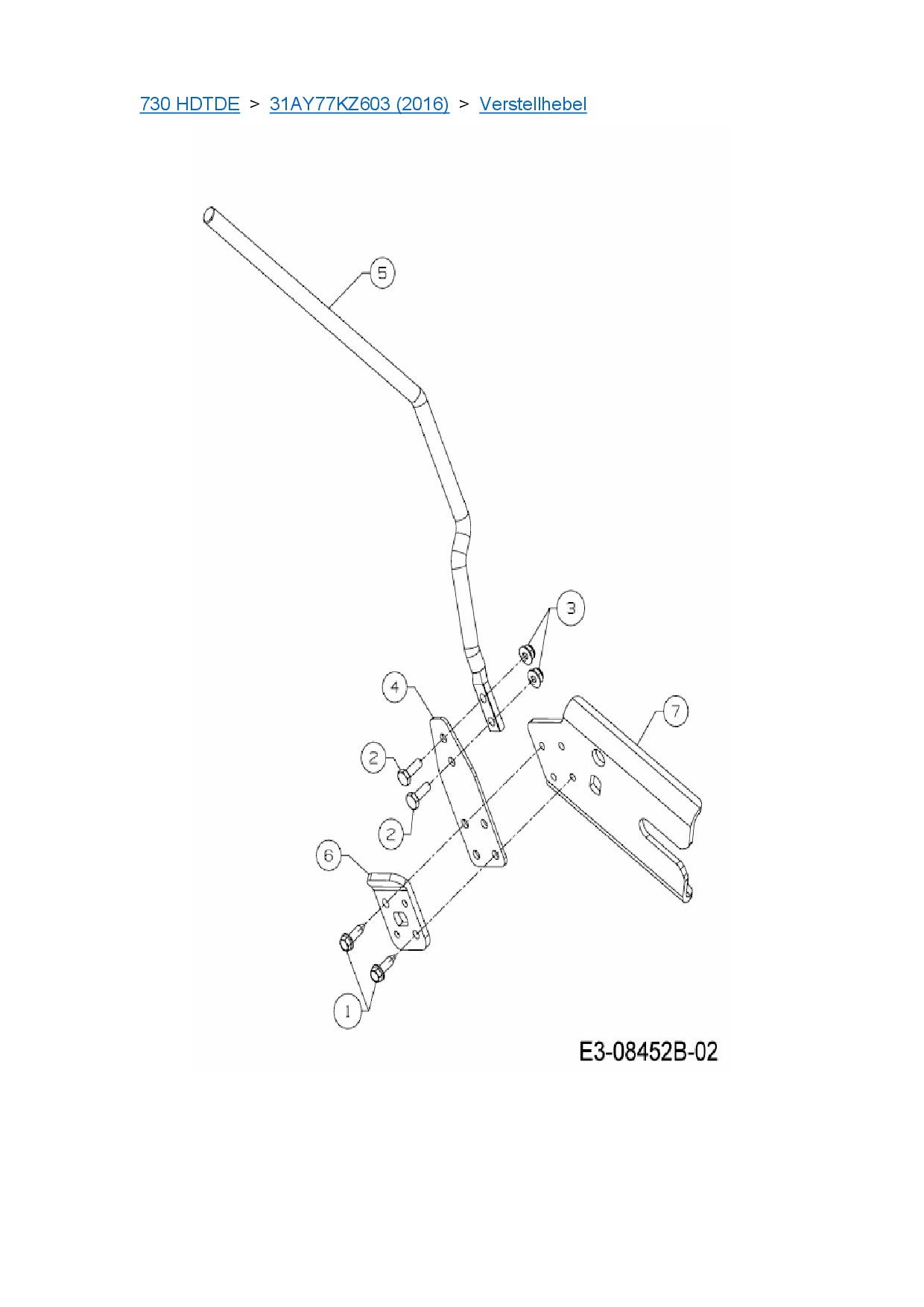 Download Ersatzteil-Zeichnung Cub Cadet 730 HDTDE Zeichnung Verstellhebel (PDF-Format)