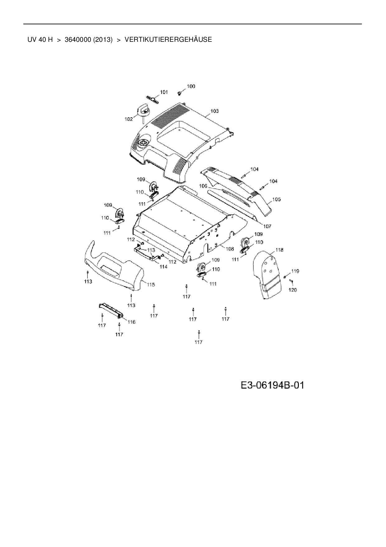 Ersatzteile für Motorvertikutierer Wolf-Garten UV 40 H aus der Zeichnung Vertikutierergehäuse: