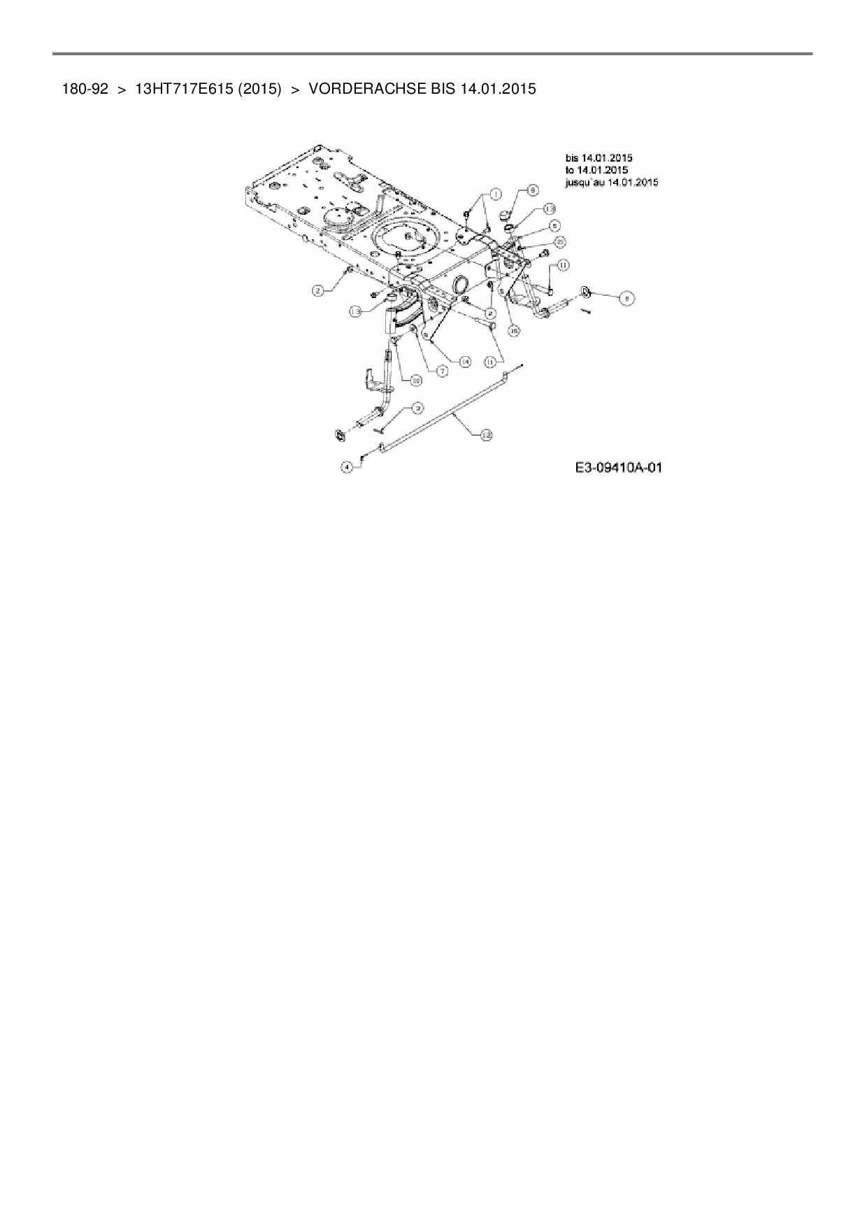 Ersatzteile für Rasentraktor Black Edition 180-92 aus der Zeichnung Vorderachse bis 14.01.2015:
