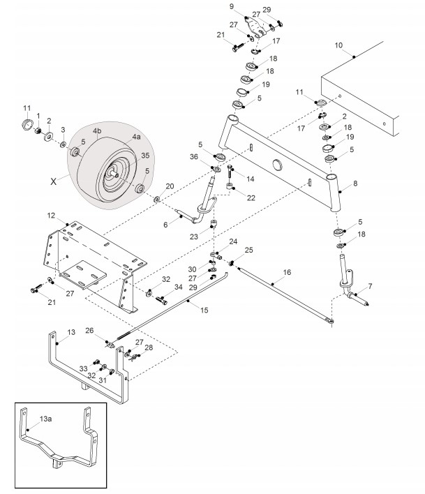 Zeichnung von ECHO-Motorgeräte Rasentraktoren A-Serie A-Serie Bj. 1996 bis August 2002 Vorderachse von S.-Nr.: 90325..bis 000200: