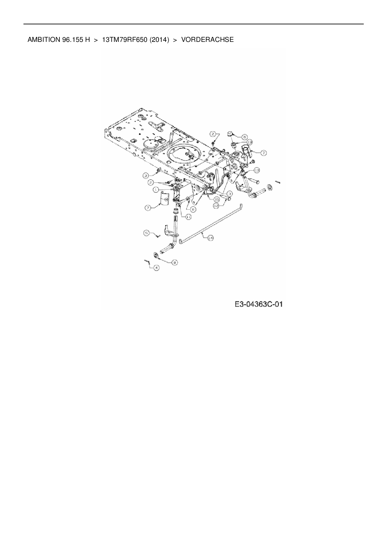 Ersatzteile für Rasentraktor Wolf-Garten Ambition 96.155 H aus der Zeichnung Vorderachse: