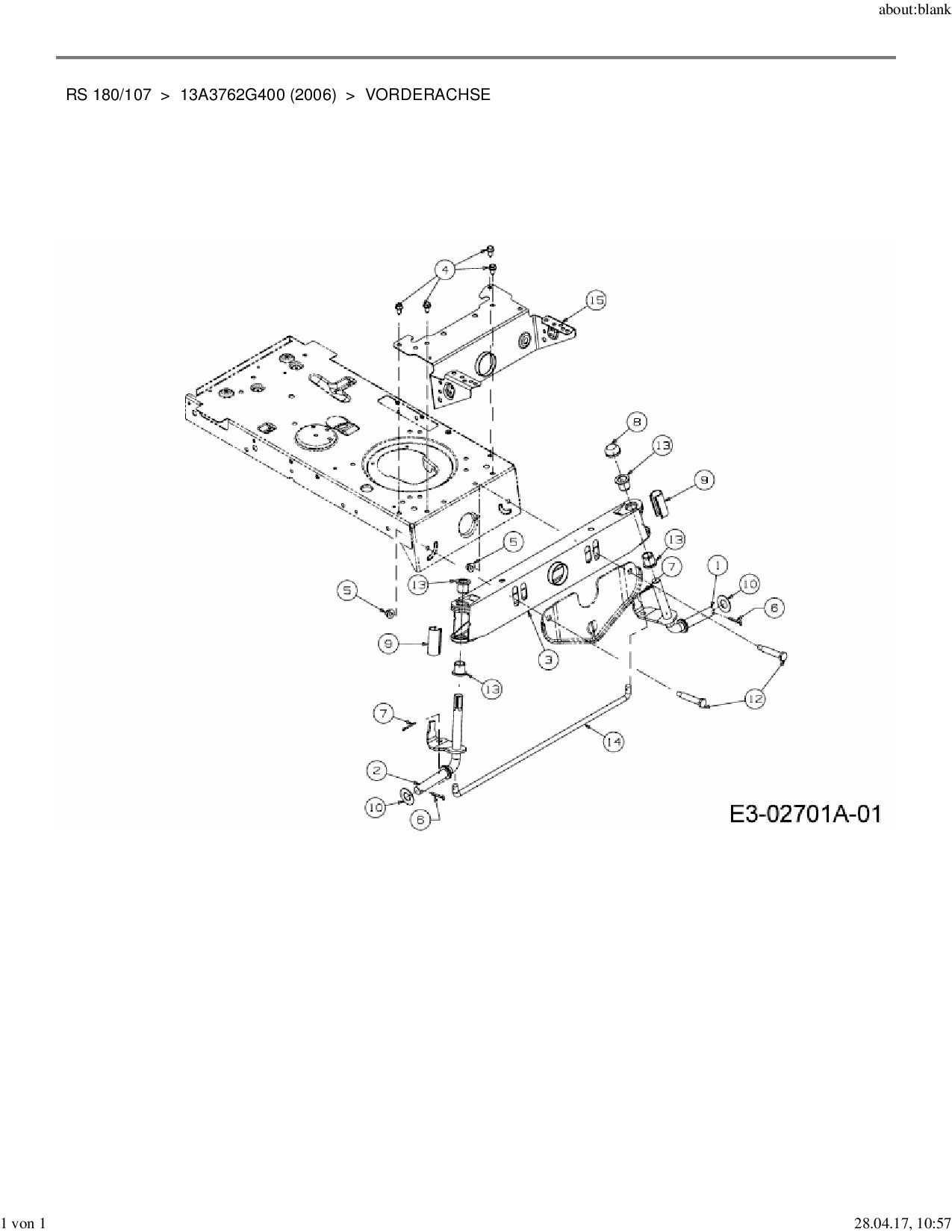 Ersatzteile für Rasentraktor MTD RS 180/107 aus der Zeichnung Vorderachse: