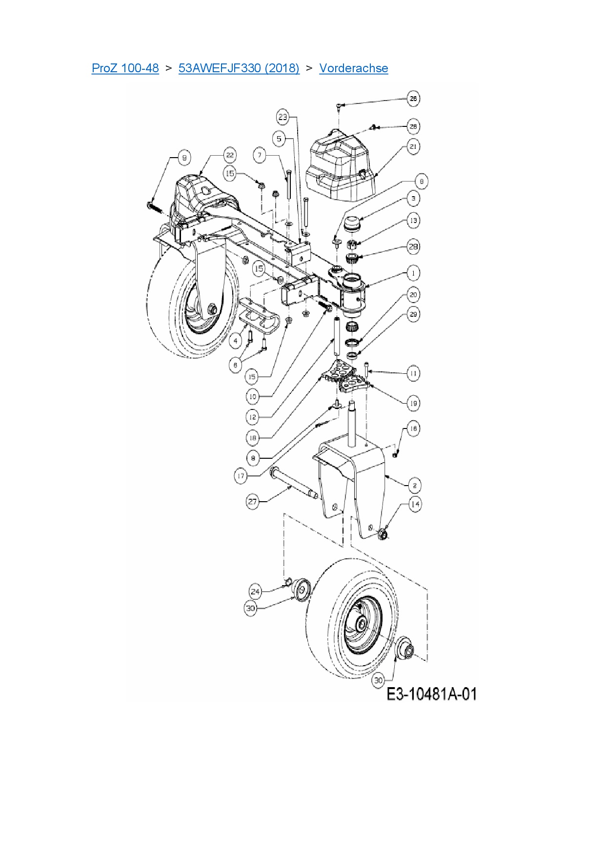 Ersatzteile für Zero Turn Cub Cadet ProZ 100-48 aus der Zeichnung Vorderachse: