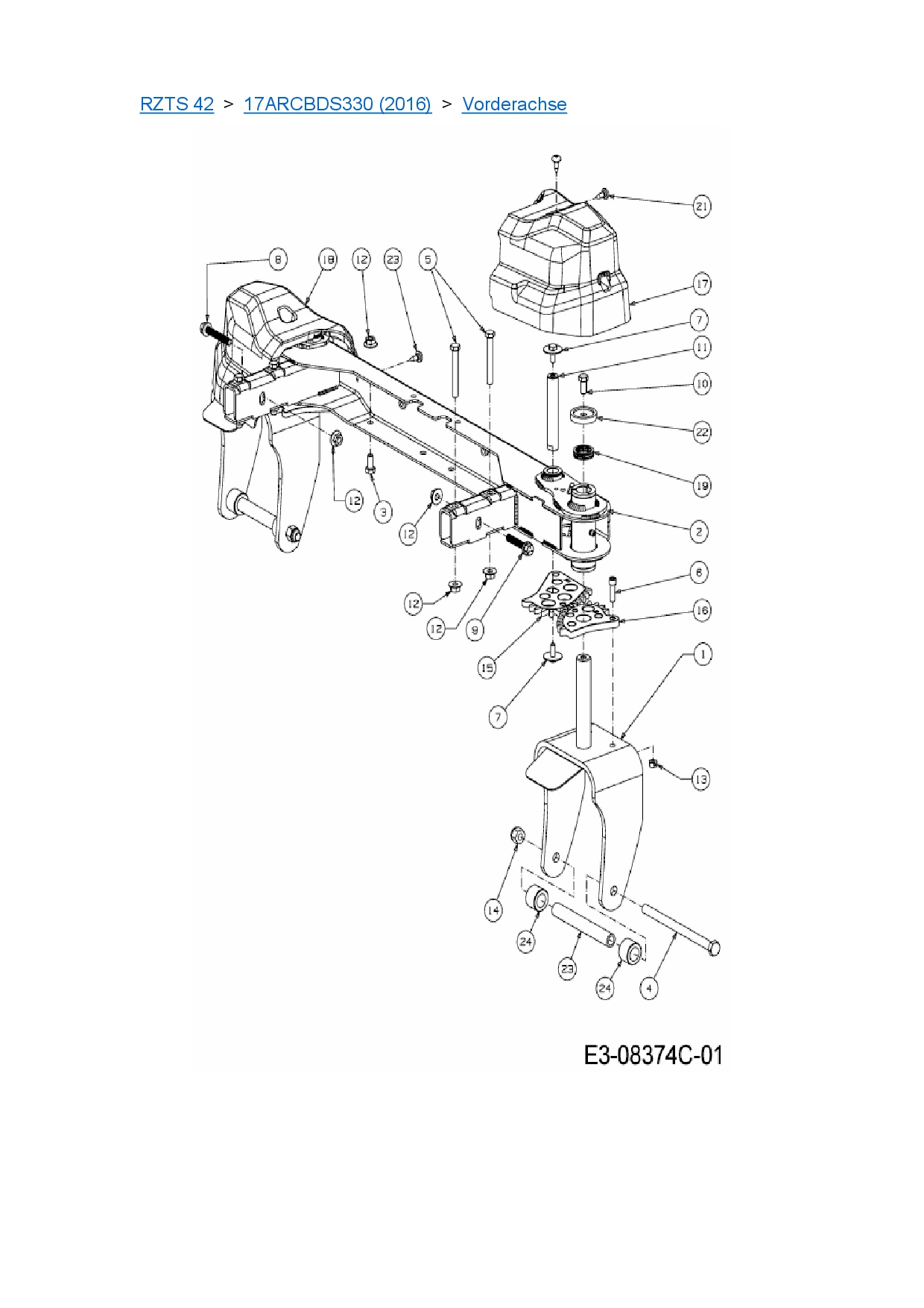 Ersatzteile für Zero Turn Cub Cadet RZTS 42 aus der Zeichnung Vorderachse: