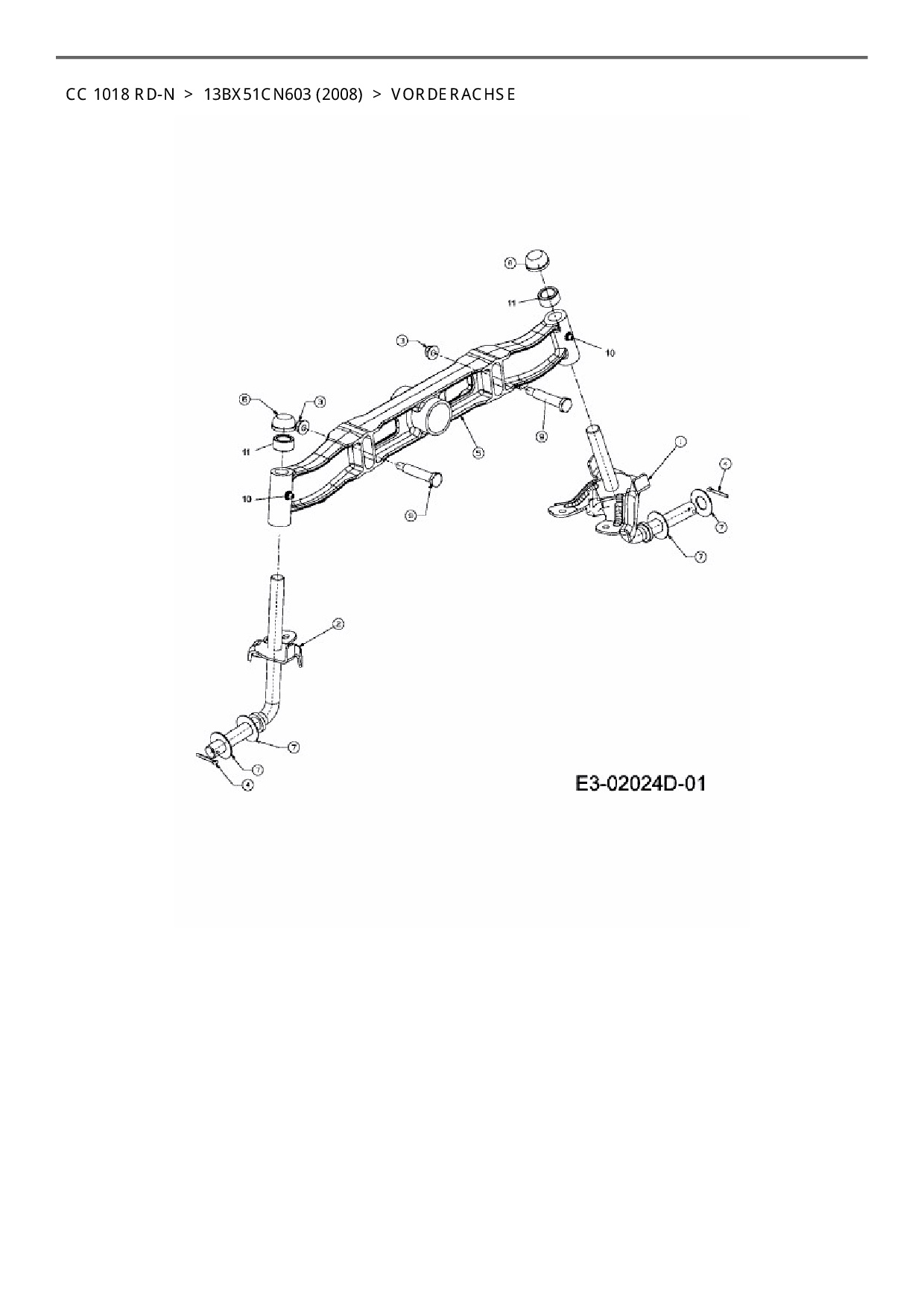 Download Ersatzteil-Zeichnung Cub Cadet CC 1018 RD-N Zeichnung Vorderachse (PDF-Format)
