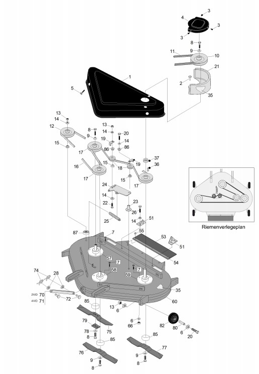 Zeichnung von ECHO-Motorgeräte Rasentraktoren A-Serie A-200er Serie Bj. 2006 bis 2008 WC-123C-01 ab Bj. 05-2005:
