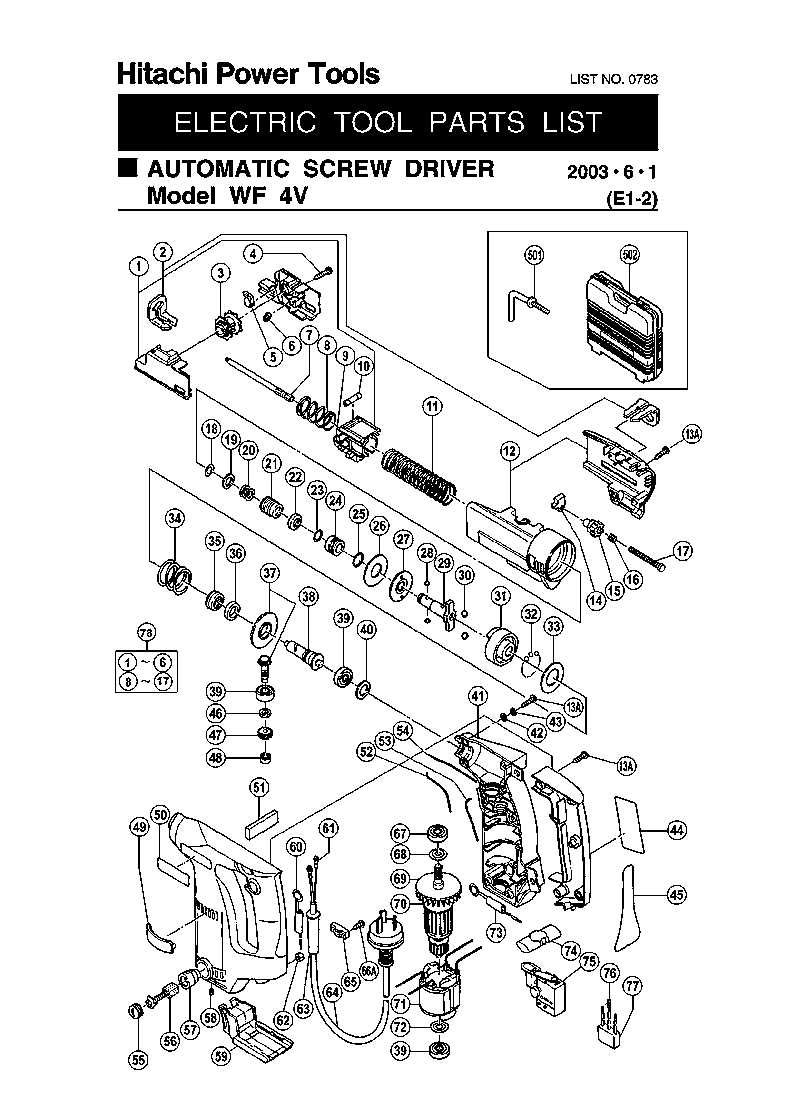 Zeichnung Sollten Sie Fragen zu einem Ersatzteil vom Hikoki (Hitachi) WF4V - Automatik Schrauber haben, können Sie uns gerne eine E-Mail (mit einem Foto vom Typenschild Ihres Gerätes) schreiben oder eine Ersatzteilanfrage stellen.